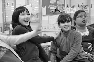 En Pau i la Chaimae interpretant Dins un llitet rosa:
